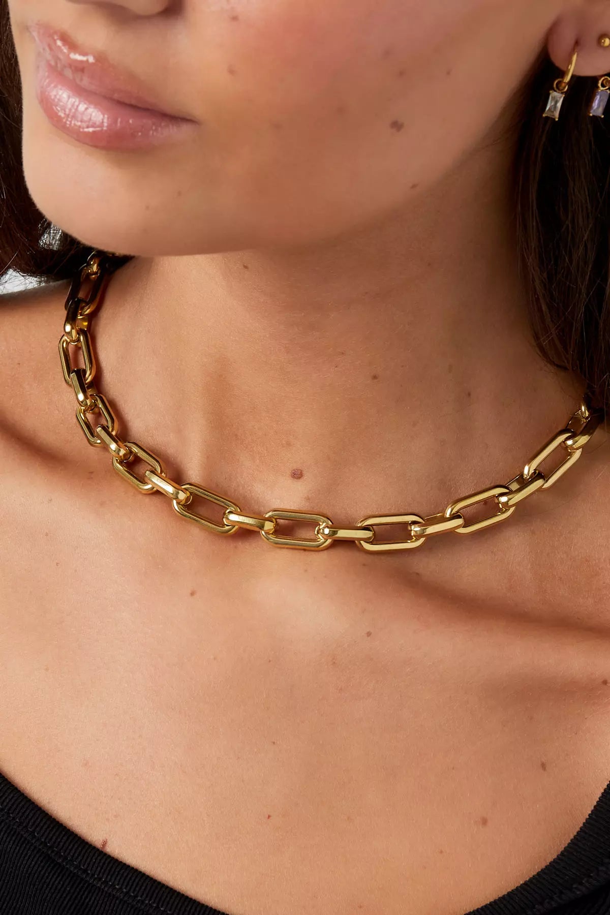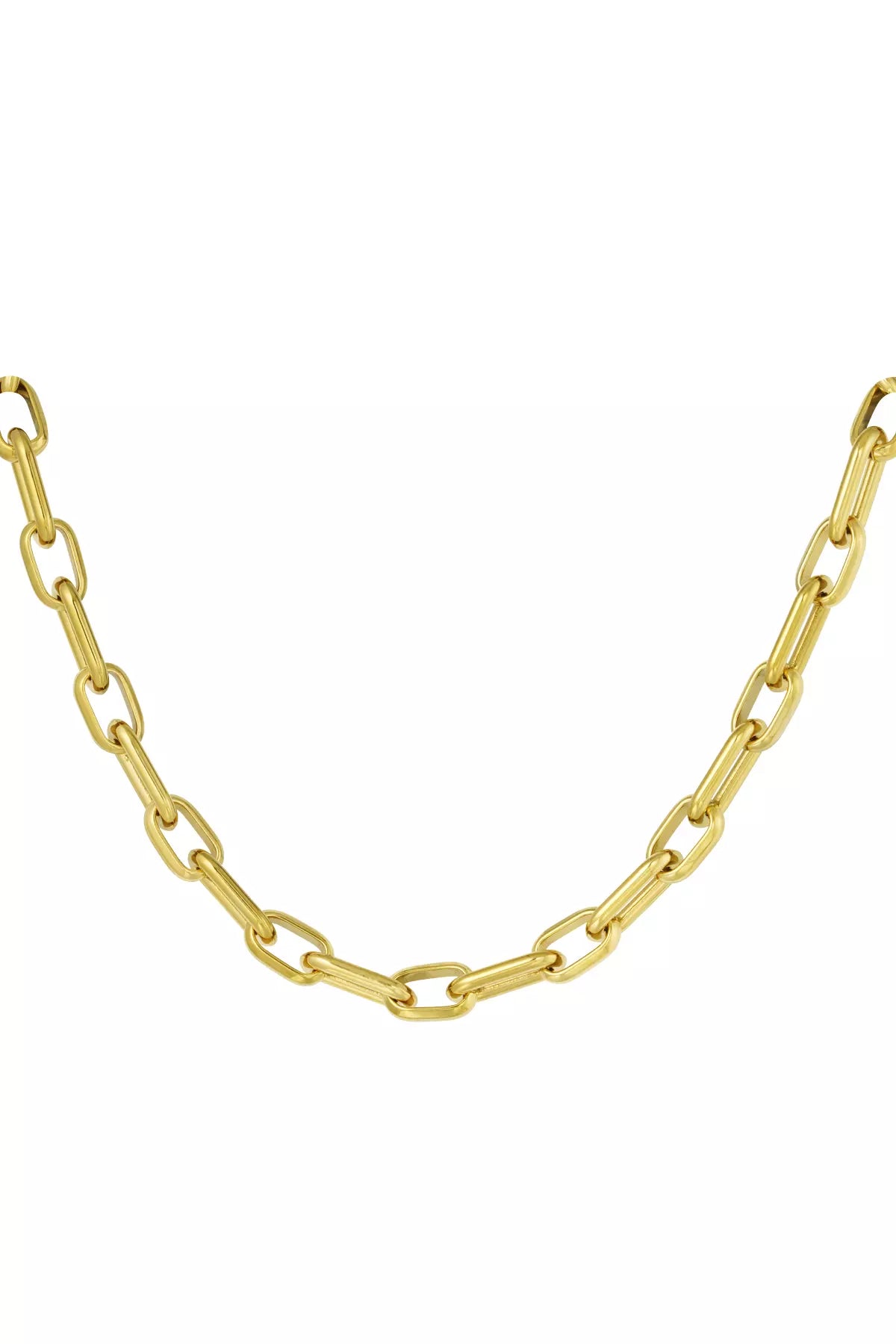 Die Hypatia Statementkette besteht aus großen Gliedern, die mit einer glänzenden und polierten Oberfläche veredelt sind. Sie vereint unvergleichliche Eleganz und modernen Stil, um dein Erscheinungsbild auf ein völlig neues, auffälliges Niveau zu heben. Ein wahrer Blickfang, der unausweichlich alle Blicke auf sich zieht.