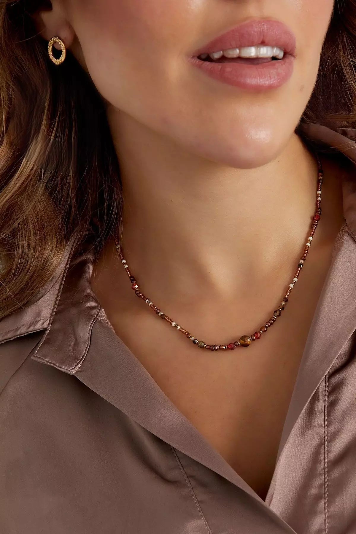 Die Leilani Kette verleiht jedem Outfit einen zauberhaften Charme. Die zarten Perlen sind mit eleganten Gold- und Rottönen kombiniert, um eine harmonische und zeitlose Schönheit zu erschaffen. Die Perlen besitzen außerdem einen schönen schimmernden Effekt, der im Licht besonders betörend wirkt.