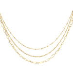 Die Kombination aus drei feinen Ketten verleiht diesem Schmuckstück eine besondere Leichtigkeit und subtile Schönheit. Jede Kette hat ihren eigenen Charme, und zusammen bilden sie eine harmonische Einheit, die deine Halspartie auf dezente Weise betont. Die Ketten sind miteinander befestigt, um ein unkompliziertes Tragen und Anlegen zu ermöglichen.