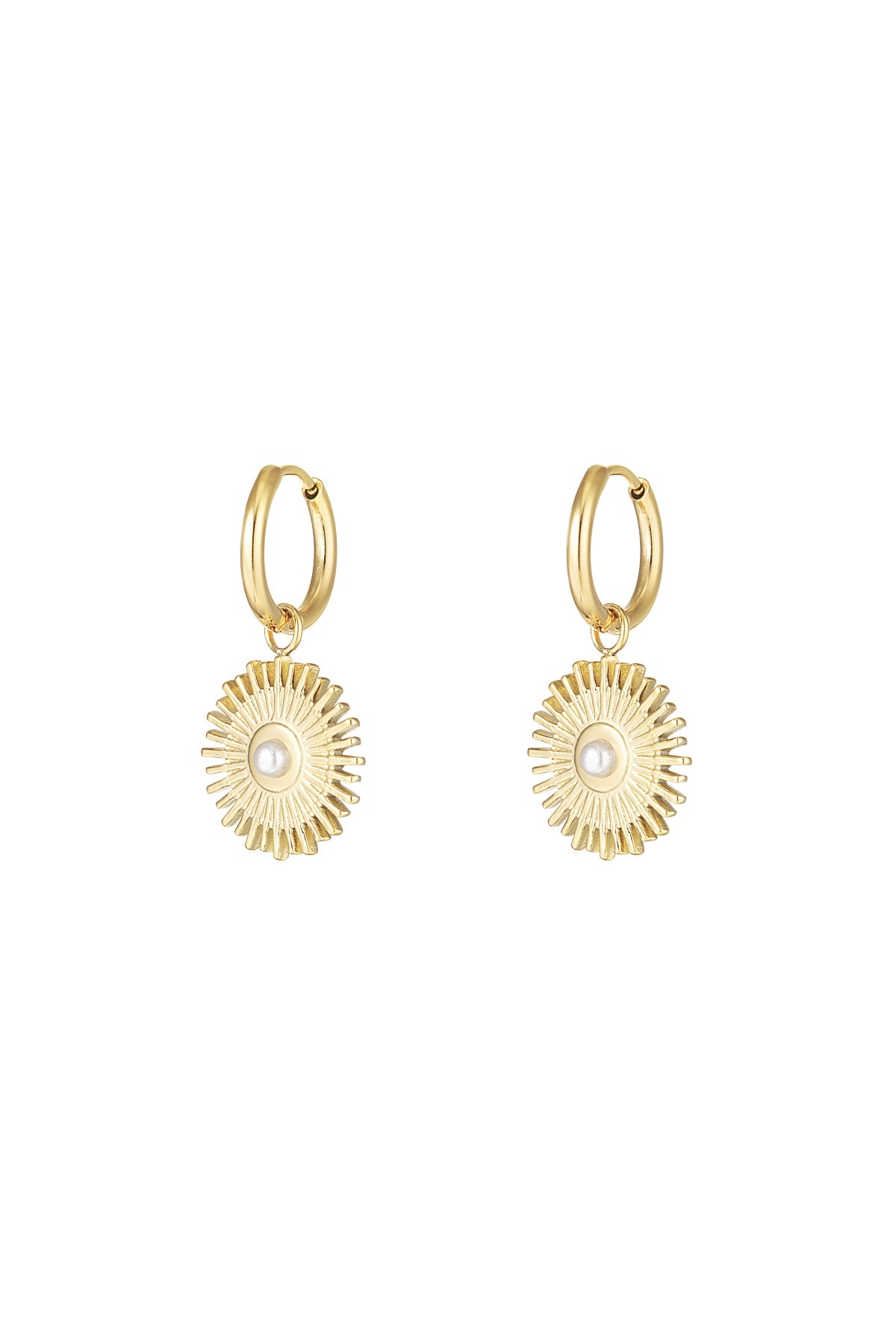 Die sonneninspirierte Gestaltung verleiht diesen Ohrringen eine zeitlose Eleganz und einen Hauch von nostalgischem Charme. Die einzelne Perle in der Mitte fügt eine anmutige Note hinzu und vervollständigt das Vintage-Gefühl auf eine subtile und elegante Weise. Diese Ohrringe sind die perfekte Wahl, um deinem Look einen Hauch von Sonnenschein und Vintage-Raffinesse zu verleihen.