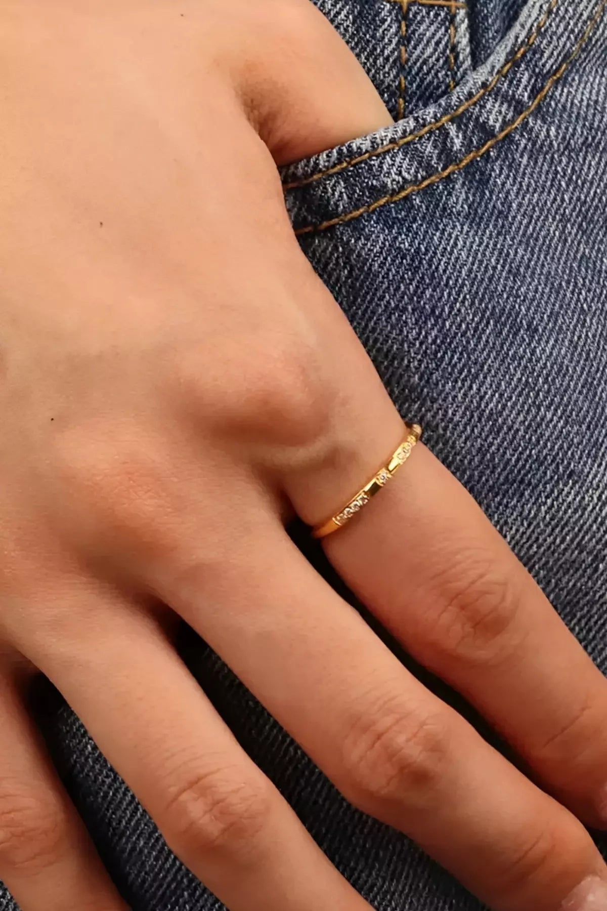 Der Leontine Ring überzeugt mit seinem filigranen Design und zarten Glanz. Kleine, funkelnde Zirkoniasteine verleihen ihm eine elegante Note, während die schlichte Form ihn zum perfekten Accessoire für jeden Tag macht. Ob alleine getragen oder kombiniert – dieser Ring passt immer!