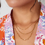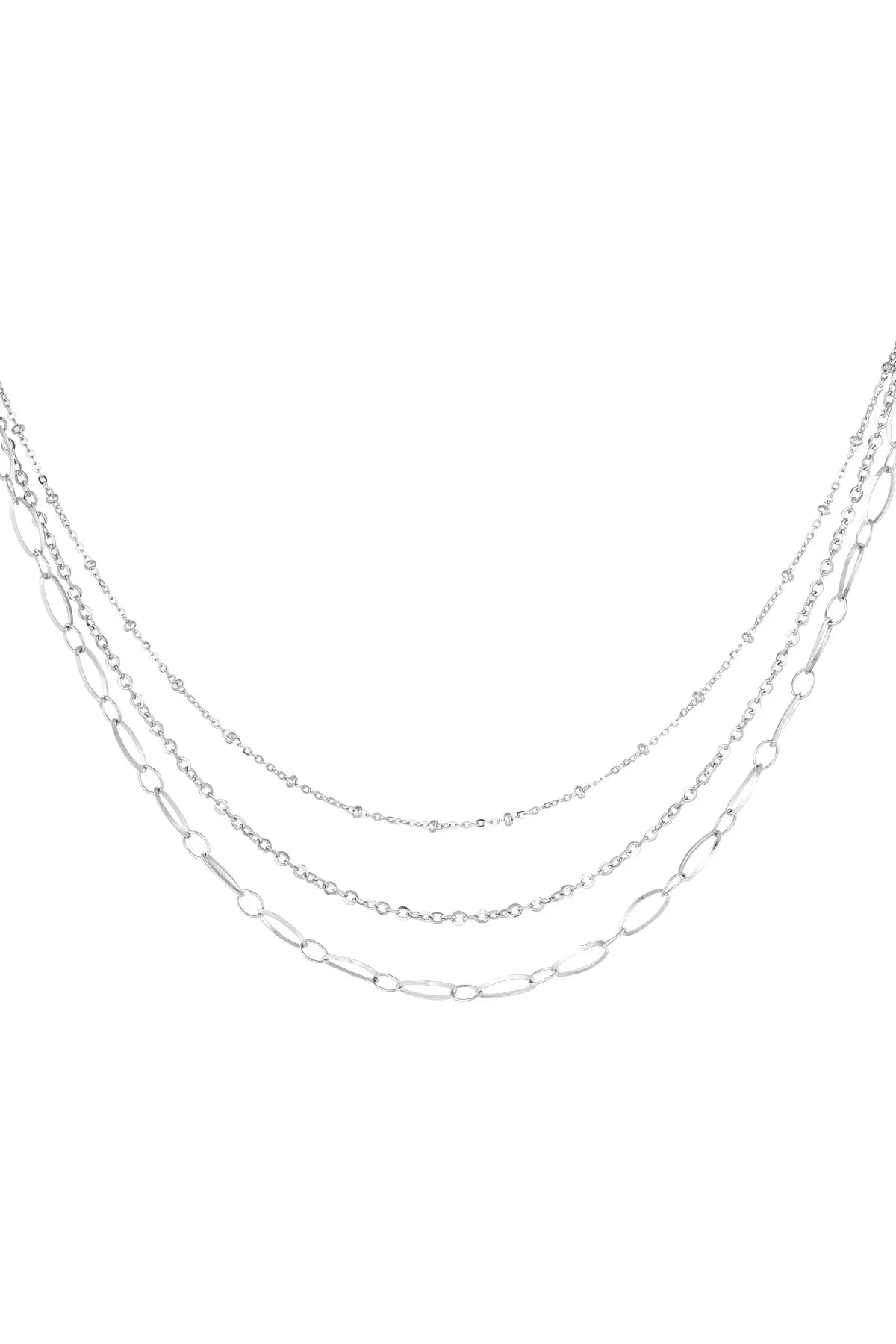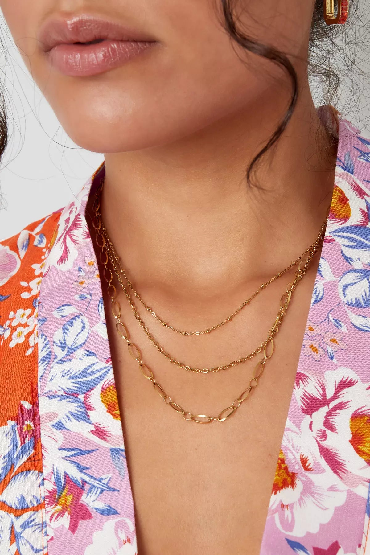 Die Kombination aus drei feinen Ketten verleiht diesem Schmuckstück eine besondere Leichtigkeit und subtile Schönheit. Jede Kette hat ihren eigenen Charme, und zusammen bilden sie eine harmonische Einheit, die deine Halspartie auf dezente Weise betont. Die Ketten sind miteinander befestigt, um ein unkompliziertes Tragen und Anlegen zu ermöglichen.